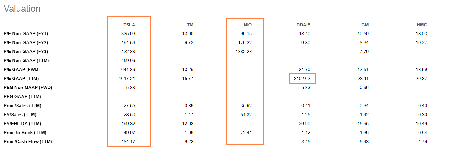 SA의 Peers에 나오는 회사들이 이렇게만 있다보니 최근 전기차 회사 중에 NIO가 나오는데요,