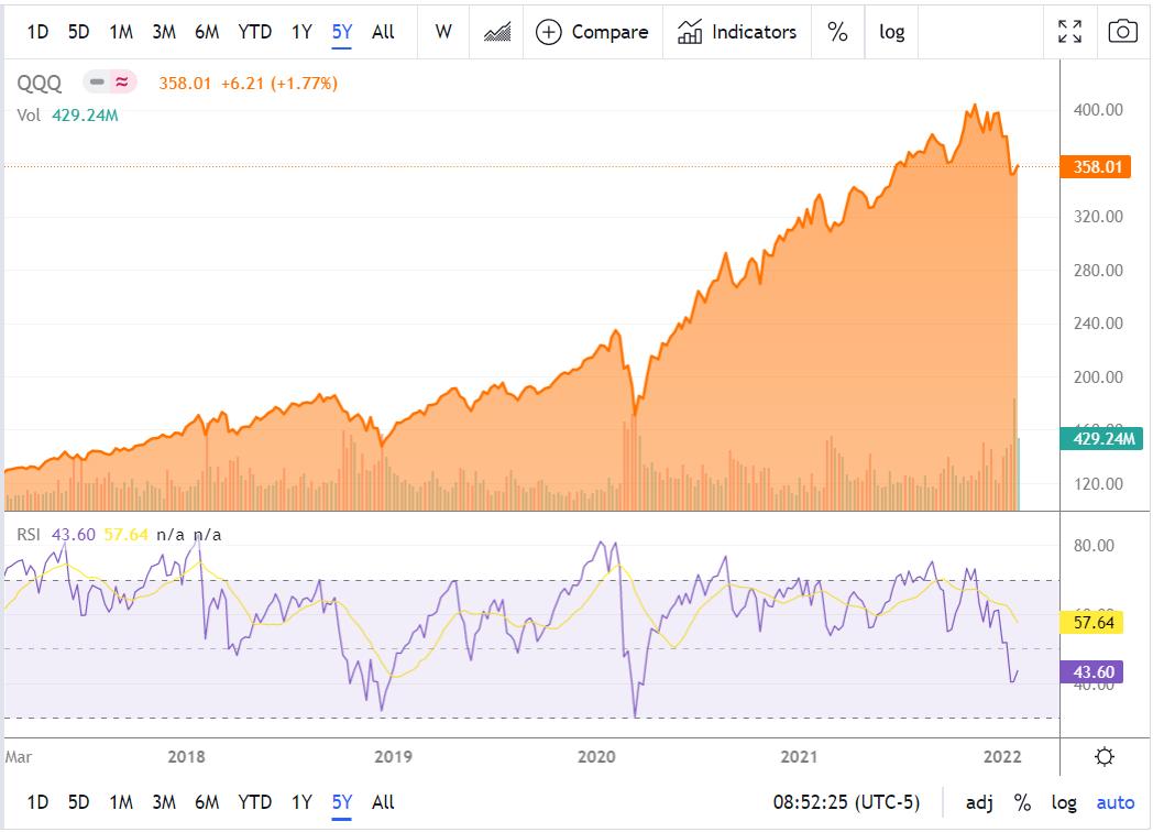 보시다시피 위의 QQQ 1년 및 5년 차트를 보시면 매수 타이밍은 거의 맞게 볼 수 있지만 매도 및 익절은 어려운 것을 보실 수 있으실겁니다.